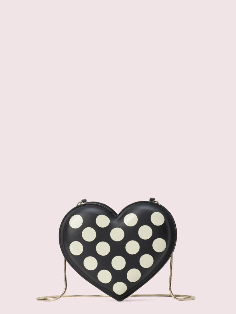 Diese Umhängetasche wurde mit ganz viel Liebe gemacht. Das glatte italienische Leder mit großem Tupfenmuster wurde zu einem Herz geformt und mit luxuriösem Velours ausgelegt, damit all die Dinge, die du liebst, darin sicher aufbewahrt werden können.