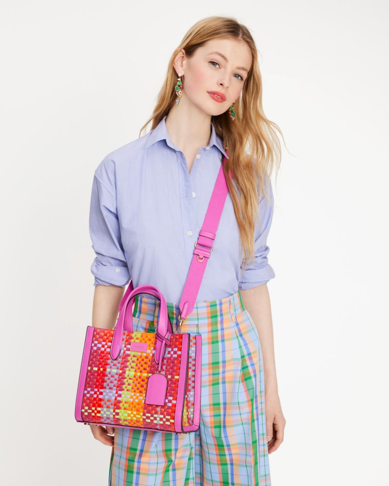 Manhattan Madras Plaid Tote Bag Aus Stroh, Gewebt, Klein
