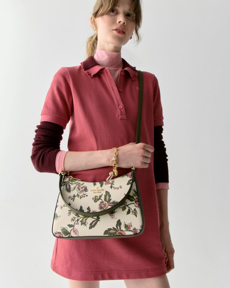 Wir finden, eine Schultertasche sollte zwei Dinge sein: schick und funktional. In diesem hübschen Exemplar kannst du alles Wichtige verstauen – Geldbörse, Schlüssel und Handy – und sie hat sogar eine Tasche für Snacks, egal, ob du Gummibärchen oder Mandeln bevorzugst. Denn auch die sind wichtig.