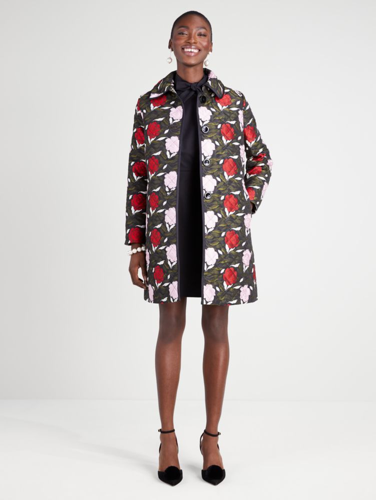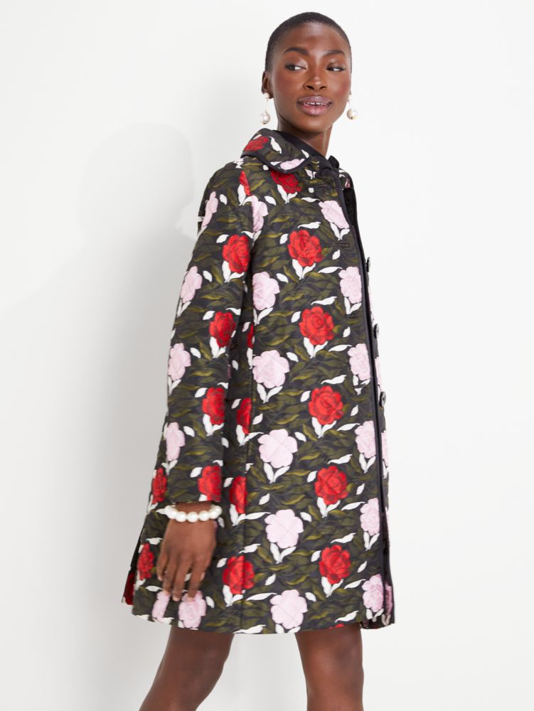 Herbstzeit heißt: Zwiebellook! Wenn die Tage kühler werden, ist die Zeit reif für diesen eleganten Mantel zum Überwerfen mit unserem diesjährigen „Rose Garden“-Brokat.