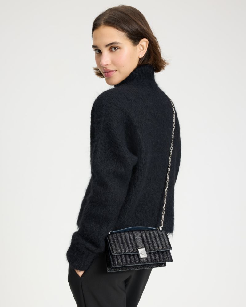 Deco Umhängetasche aus glitzerndem Wildleder mit Steppmuster, Umschlag und Kette, extraklein, , Product